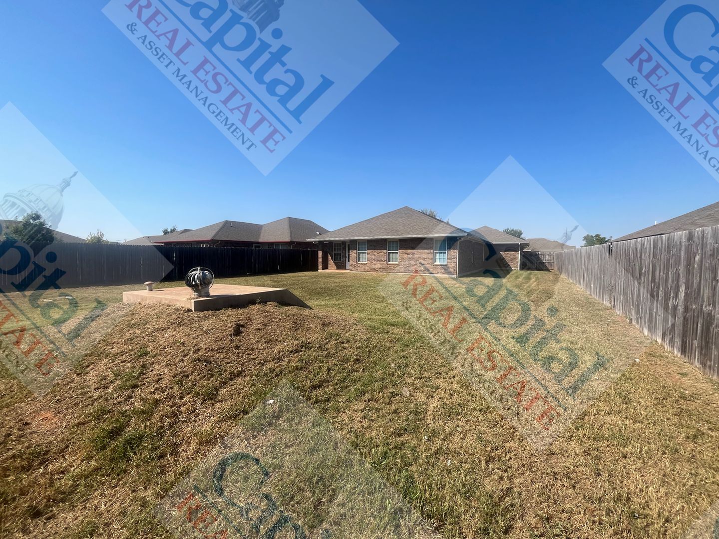 Beautiful 4 bedroom home with 2 baths, 2 car garage and a LARGE, fenced backyard that backs up to a green belt. This home is a geothermal, fully electric home. Home has been updated with new bedroom carpet and paint throughout. Garage has designated circuits for power tools, etc. Comfort and security of a large storm shelter that's equipped with electric, lights and a battery-backed up TV. Located conveniently to the Airport & FAA Center with easy access to the Turnpike and shopping.