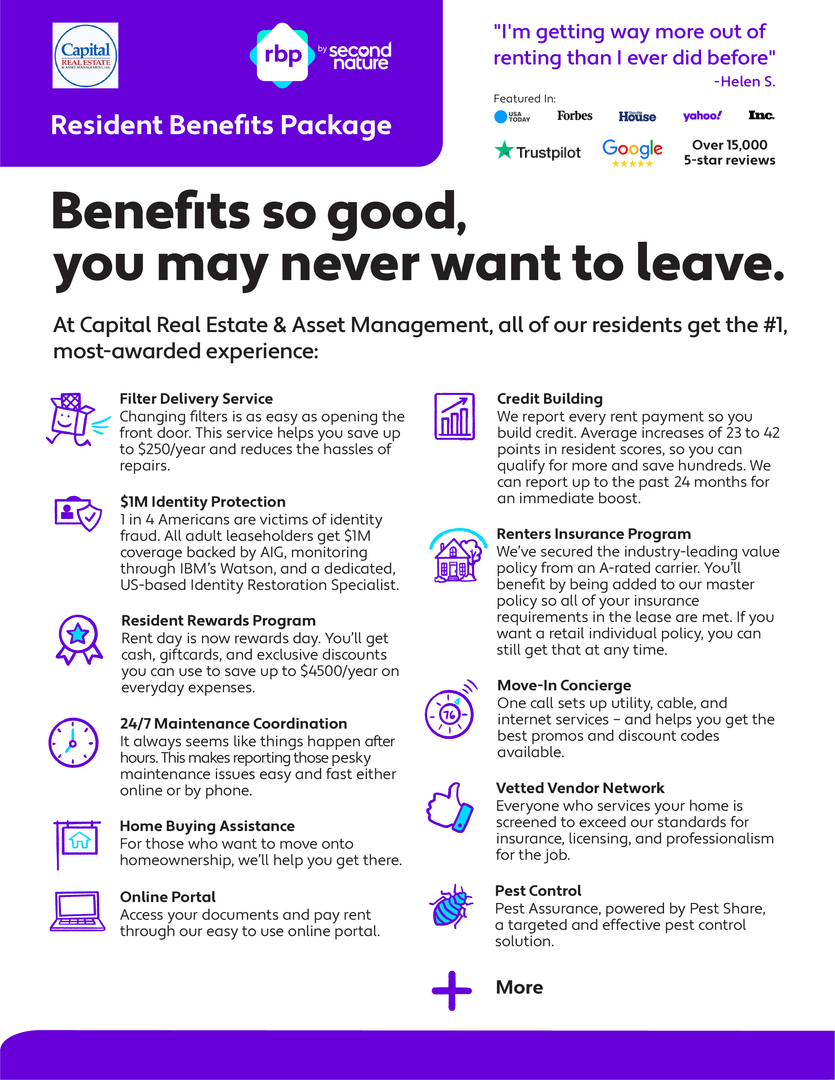 * All Capital Real Estate & Asset Management residents are enrolled in the Resident Benefits Package